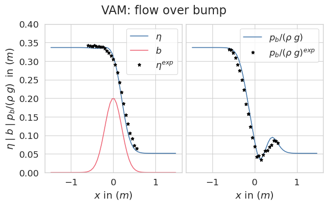 class VAMHyperbolic(Model):# Parameters replace attrs fields dimension = param.Integer(default=1)# Passing int=6 creates default variables q_0...q_5 variables = param.Parameter(default=6)# Aux variables defined by name aux_variables = param.Parameter( default=["hw2", "p0", "p1", "dbdx", "dhdx", "dhp0dx", "dhp1dx"] ) parameters = param.Parameter(default={"g": 9.81})def flux(self): fx = Matrix([0for i inrange(self.n_variables)])# Access aux variables via dot notation (ZStruct) hw2 =self.aux_variables.hw2# Access variables by index (generated from default=6) h =self.variables[0] hu0 =self.variables[1] hu1 =self.variables[2] hw0 =self.variables[3] hw1 =self.variables[4] u0 = hu0 / h u1 = hu1 / h w0 = hw0 / h w1 = hw1 / h fx[0] = hu0 fx[1] = hu0 * u0 + Rational(1, 3) * hu1 * u1 fx[2] =2* hu0 * u1 fx[3] = hu0 * w0 + Rational(1, 3) * hu1 * w1 fx[4] = hu0 * w1 + u1 * (hw0 + Rational(2, 5) * hw2)# FIX: Return ZArray(fx) directly for 1D to get shape (n, 1).# ZArray([fx]) would create shape (1, n, 1).return ZArray(fx)def nonconservative_matrix(self):# We need to construct the matrix with shape (n, n, dimension) = (n, n, 1) nc_val = Matrix( [[0for i inrange(self.n_variables)] for j inrange(self.n_variables)] ) hw2 =self.aux_variables.hw2 h =self.variables[0] hw0 =self.variables[3] p =self.parameters u0 =self.variables[1] / h w0 = hw0 / h w2 = hw2 / h nc_val[1, 0] = p.g * h nc_val[1, 5] = p.g * h nc_val[2, 2] =-u0 nc_val[4, 2] =+Rational(1, 5) * w2 - w0# FIX: Ensure output is (n, n, 1)# ZArray(nc_val) gives (n, n). We explicitly shape it. nc = ZArray.zeros(self.n_variables, self.n_variables, self.dimension) nc[:, :, 0] = ZArray(nc_val)return ncdef eigenvalues(self): ev = Matrix([0for i inrange(self.n_variables)]) h =self.variables[0] hu0 =self.variables[1] hu1 =self.variables[2] p =self.parameters u0 = hu0 / h u1 = hu1 / h ev[0] = u0 ev[1] = u0 +1/ sqrt(3) * u1 ev[2] = u0 -1/ sqrt(3) * u1 ev[3] = u0 + sqrt(p.g * h + u1**2) ev[4] = u0 - sqrt(p.g * h + u1**2) ev[5] =0return ZArray(ev)def source(self): R = Matrix([0for i inrange(self.n_variables)]) p0 =self.aux_variables.p0 p1 =self.aux_variables.p1 dbdx =self.aux_variables.dbdx dhdx =self.aux_variables.dhdx dhp0dx =self.aux_variables.dhp0dx dhp1dx =self.aux_variables.dhp1dx R[0] =0 R[1] = dhp0dx +2* p1 * dbdx R[2] = dhp1dx - (3* p0 - p1) * dhdx -6* (p0 - p1) * dbdx R[3] =-2* p1 R[4] =6* (p0 - p1) R[5] =0return ZArray(-R)def constraints(self): C = Matrix([0for i inrange(3)]) x =self.position[0] q0 =self.variables[0] q1 =self.variables[1] q2 =self.variables[2] q3 =self.variables[3] q4 =self.variables[4] q5 =self.variables[5] h = q0 u0 = q1 / h u1 = q2 / h w0 = q3 / h w1 = q4 / h b = q5 w2 =self.aux_variables.hw2 / q0 C[0] = ( h * Derivative(u0, x)+ Rational(1, 3) * Derivative(h * u1, x)+ Rational(1, 3) * u1 * Derivative(h, x)+2* (w0 - u0 * Derivative(b, x)) ) C[1] = ( h * Derivative(u0, x)+ u1 * Derivative(h, x)+2* (u1 * Derivative(b, x) - w1) ) C[2] = ( h * Derivative(u0, x)+ u1 * Derivative(h, x)+2* (w0 + w2 - u0 * Derivative(b, x)) )return ZArray(C)class VAMPoisson(Model): dimension = param.Integer(default=1)# Defined explicitly by name variables = param.Parameter(default=["p0", "p1"]) aux_variables = param.Parameter( default=["dp0dx","ddp0dxx","dp1dx","ddp1dxx","d4p0dx4","d4p1dx4","h","dbdx","ddbdxx","dhdx","ddhdxx","u0","du0dx","w0","w1","u1","du1dx","dt", ] ) parameters = param.Parameter(default={"g": 9.81})def residual(self): R = Matrix([0for i inrange(self.n_variables)]) h =self.aux_variables.h# Access variables via dot notation (ZStruct) p0 =self.variables.p0 p1 =self.variables.p1 dt =self.aux_variables.dt dbdx =self.aux_variables.dbdx ddbdxx =self.aux_variables.ddbdxx dhdx =self.aux_variables.dhdx ddhdxx =self.aux_variables.ddhdxx dp0dx =self.aux_variables.dp0dx dp1dx =self.aux_variables.dp1dx ddp0dxx =self.aux_variables.ddp0dxx ddp1dxx =self.aux_variables.ddp1dxx# Note: Values from the middle state after hyperbolic step oldu0 =self.aux_variables.u0 doldu0dx =self.aux_variables.du0dx oldw1 =self.aux_variables.w1 oldw0 =self.aux_variables.w0 oldu1 =self.aux_variables.u1 doldu1dx =self.aux_variables.du1dx I1 = (-Rational(1, 3)* dt* (-(3* p0 - p1) * ddhdxx- (6* p0 -6* p1) * ddbdxx- (3* dp0dx - dp1dx) * dhdx- (6* dp0dx -6* dp1dx) * dbdx+ h * ddp1dxx+ p1 * ddhdxx+2* dhdx * dp1dx )-2* (-dt * (h * dp0dx + p0 * dhdx +2* p1 * dbdx) + h * oldu0) * dbdx / h+ Rational(1, 3)* (-dt* (-(3* p0 - p1) * dhdx- (6* p0 -6* p1) * dbdx+ h * dp1dx+ p1 * dhdx )+ h * oldu1 )* dhdx/ h+2* (2* dt * p1 + h * oldw0) / h+ (-(-dt * (h * dp0dx + p0 * dhdx +2* p1 * dbdx) + h * oldu0)* dhdx/ h**2+ (-dt* ( h * ddp0dxx+ p0 * ddhdxx+2* p1 * ddbdxx+2* dbdx * dp1dx+2* dhdx * dp0dx )+ h * doldu0dx+ oldu0 * dhdx )/ h )* h+ Rational(1, 3) * h * doldu1dx+ Rational(1, 3) * oldu1 * dhdx ) I2 = (-2* (-dt * (6* p0 -6* p1) + h * oldw1) / h+2* (-dt* (-(3* p0 - p1) * dhdx- (6* p0 -6* p1) * dbdx+ h * dp1dx+ p1 * dhdx )+ h * oldu1 )* dbdx/ h+ (-dt* (-(3* p0 - p1) * dhdx- (6* p0 -6* p1) * dbdx+ h * dp1dx+ p1 * dhdx )+ h * oldu1 )* dhdx/ h+ (-(-dt * (h * dp0dx + p0 * dhdx +2* p1 * dbdx) + h * oldu0)* dhdx/ h**2+ (-dt* ( h * ddp0dxx+ p0 * ddhdxx+2* p1 * ddbdxx+2* dbdx * dp1dx+2* dhdx * dp0dx )+ h * doldu0dx+ oldu0 * dhdx )/ h )* h ) R[0] = I1 R[1] = I2return ZArray(R)def eigenvalues(self): ev = Matrix([0for i inrange(self.n_variables)])return ZArray(ev)